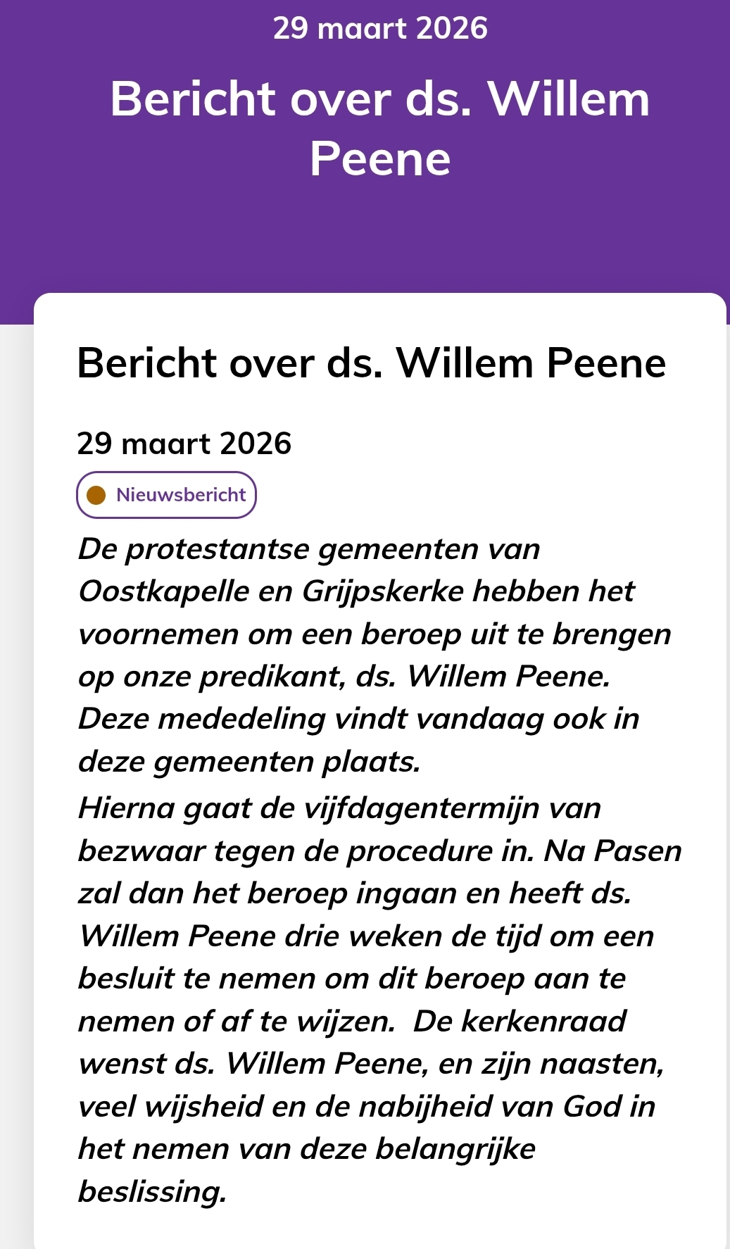 30 mrt 2026 Mededeling